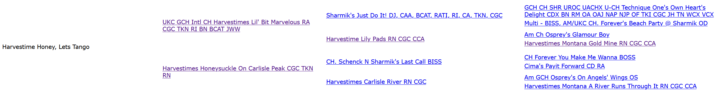 Harvestime Honey, Let’s Tango  RN CGC TKN
