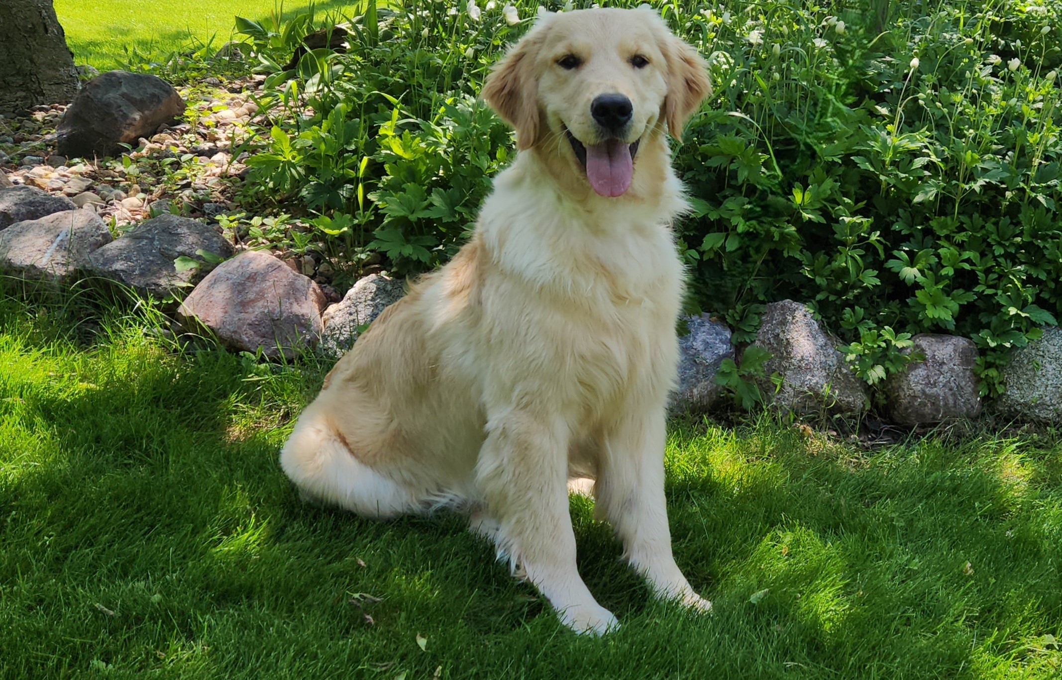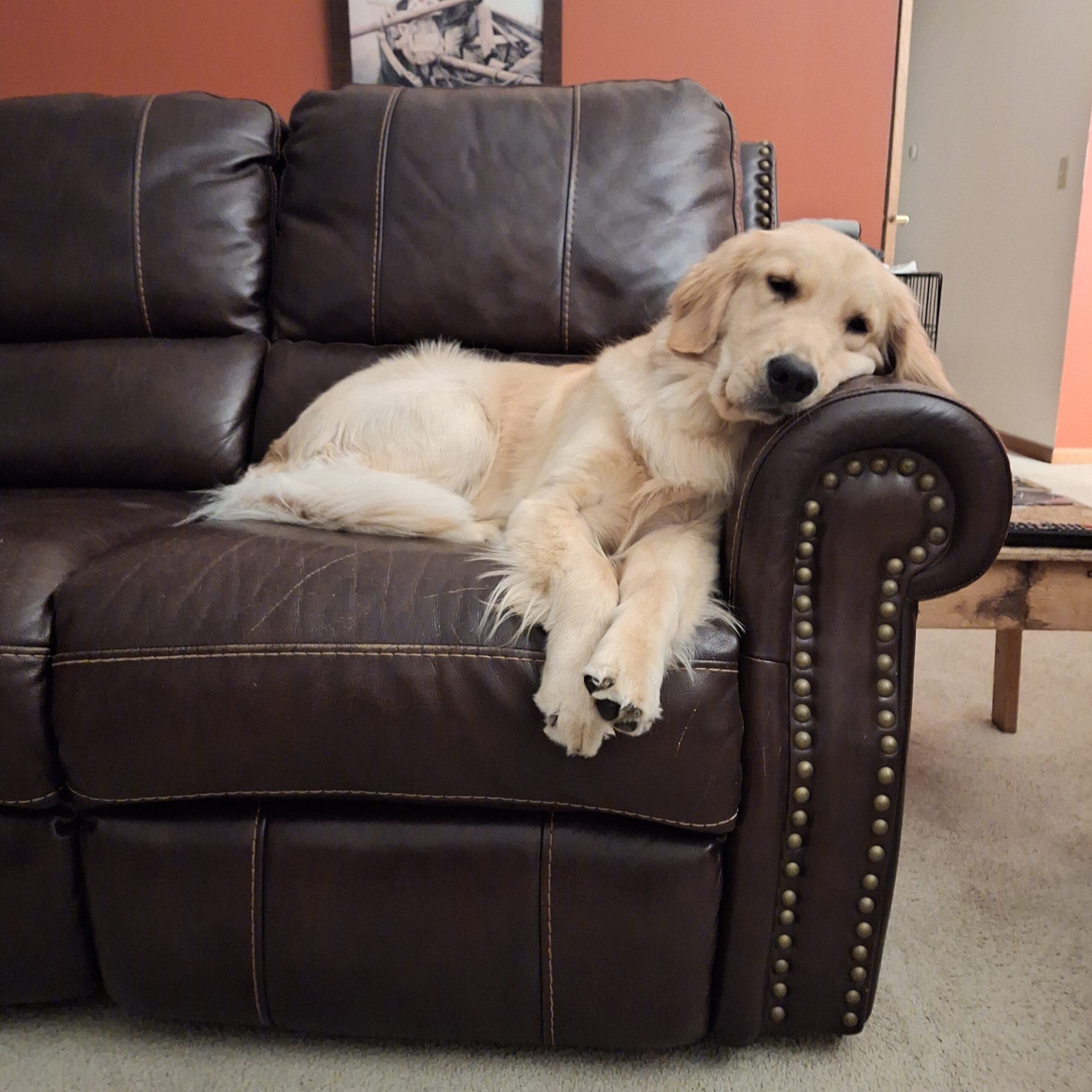 Tango is our love bug – she’ll lay next to you while you’re doing dishes, hang out in the bathroom while you’re showering and even drape herself on your lap if you sit to watch t.v. She enjoys daily walks, and people smile when they see her prancing along. If I had a dollar for every time we’ve heard “That’s a beautiful Golden you have there”, I could probably retire!